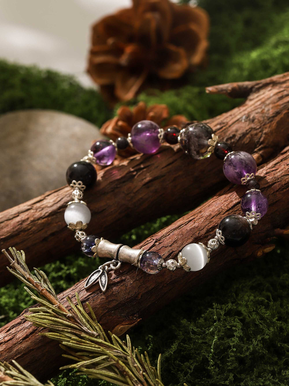 For this bracelet, I personally selected Amethyst, Obsidian, and Garnet.These stones may not be the flashiest, but they come together through fate.Through a shamanic ritual, I reconnect them with the forces of nature, awakening the subtle energy within.This isn’t just jewelry—it’s a spiritual companion that resonates with you.