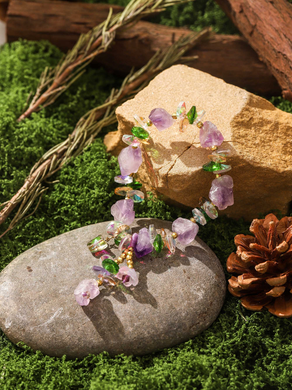 I come from a lineage of shamans, attuned to the subtle energies of natural stones.Among hundreds of amethyst pieces, I personally select those with the fullest potential vibration. Each crystal carries the primal pulse of the earth—a living rhythm from deep within nature.Before they reach you, these stones undergo an ancient family ritual to awaken their hidden energy, transforming them from mere crystals into talismans of luck and opportunity.Paired with hand-crafted glass beads, the flowing light of glass mirrors the depth of amethyst, symbolizing the harmony between human artistry and natural power. When worn, you can feel both the earth’s pulse and the brilliance of fine craftsmanship.