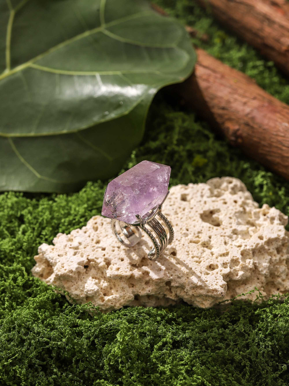 Before setting the stone, I follow the family tradition:Arrange branches and leaves into the shape of the family totem,accompanied by the beat of the shamanic drum and ancient chants,to synchronize the natural energy of the amethyst point with the earth's rhythm.This ritual imbues the ring with the earth's protection and symbolic meaning.