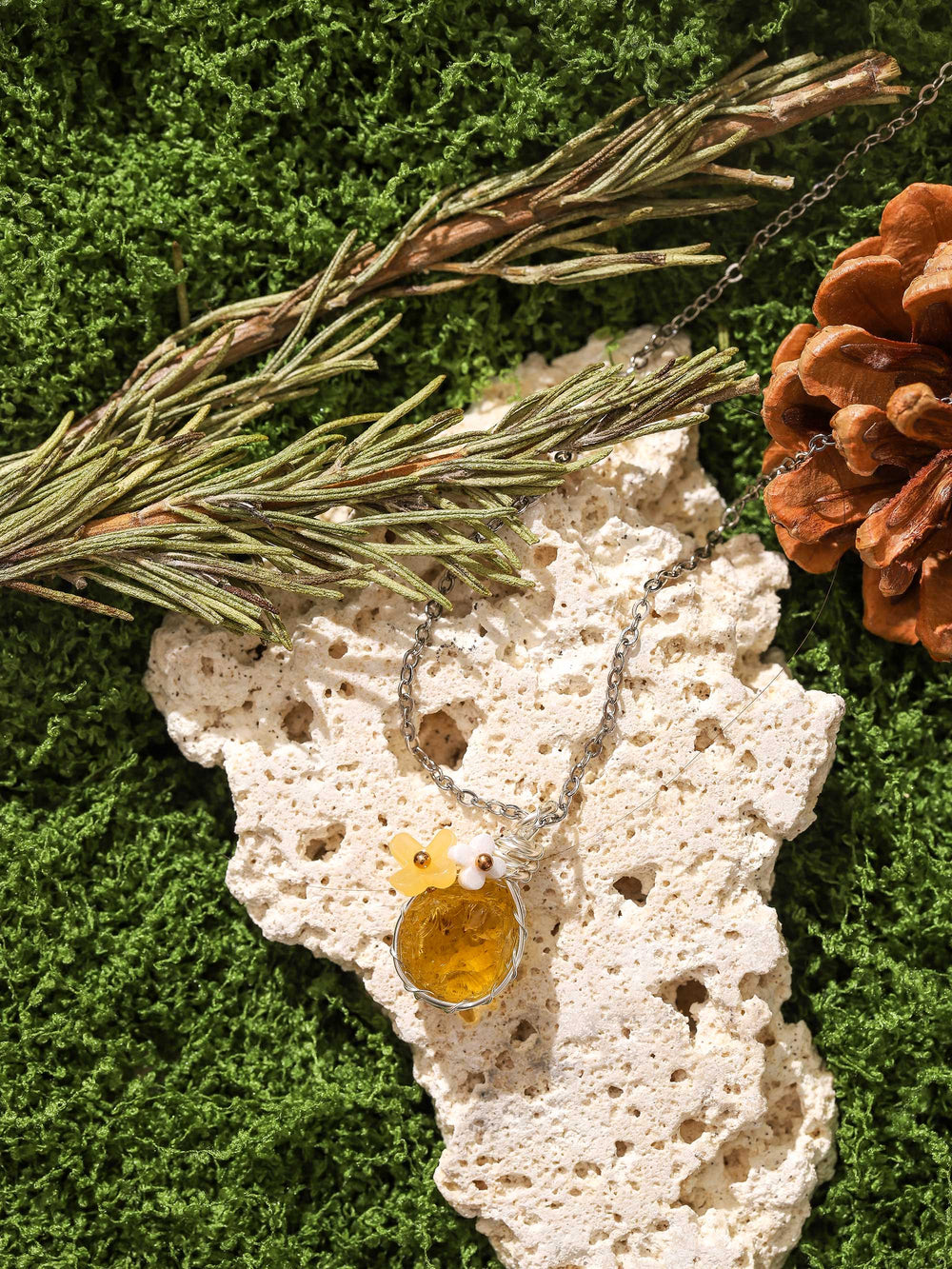 I was born into a shamanic family that empowers crystals. From a young age, I’ve been able to sense the pulse of crystals and the earth. For each crystal, I meditate deeply and close my eyes to listen to its breath. Only those stones with the purest energy, those that resonate with my soul, are chosen by me.The inspiration for this necklace comes from the golden sunlight of a midsummer afternoon: that golden beam filtering through the leaves, resting on the petals with a warm glow.When selecting the raw citrine, I carefully feel the texture of each stone, choosing only those that are clear and full of vibrant color.It is not just jewelry; it is like a small piece of time preserved in sunlight, and wearing it feels like carrying a touch of freshness and vitality with you.