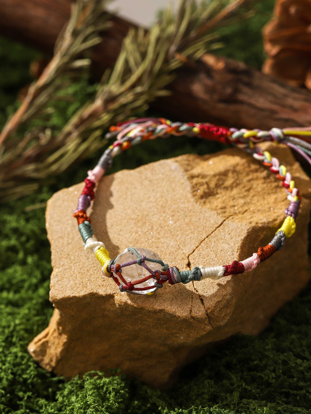 As a Shamanic priestess who empowers crystals, I personally select high-energy natural white quartz and weave it into a multicolored cord that symbolizes the balance of the five elements and the protection of the five directions. The clarity of the main stone intertwines with the vibrant threads, like a rainbow under the morning light, bringing the natural powers of earth, metal, water, fire, and wood. It guards each intention with harmony and protection. After crafting, I reconnect the bracelet to the energies of the earth and heavens with my family’s totems, awakening the pure and protective force of the white quartz, transforming it into a spiritual companion for balance and stability.