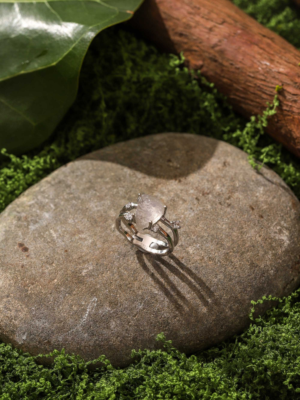 I come from a shamanic lineage that channels the natural power of crystals. Among countless raw stones, I select only those with the strongest energy and the purest light.In this design, the moonstone is chosen for its unique aura. Its blue glow is like the reflection of the night sky on the water, flowing softly and continuously. The triangular shape represents the harmony of heaven, earth, and humanity, an ancient symbol that connects the cosmic order.Together, the moonstone and its geometric design form a conversation between the moonlight and the earth, embodying the rhythm of nature and the wearer’s essence.