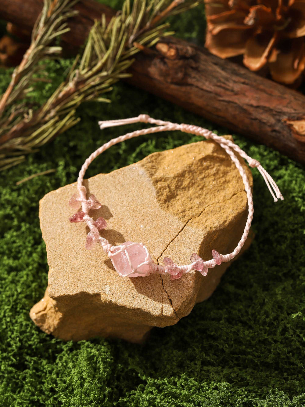 As a Shamanic priestess with the ability to empower crystals, I personally select high-energy natural rose quartz and delicate strawberry quartz chips, weaving them into a soft pastel pink cord. The gentle luster of the main stone blends harmoniously with the surrounding crystals, like the first rays of dawn softly touching the heart. After completion, I reconnect the bracelet with the forces of nature using my family’s totems, awakening the hidden energy within the rose quartz. It is not just a piece of jewelry, but a spiritual companion that guards love and peace.