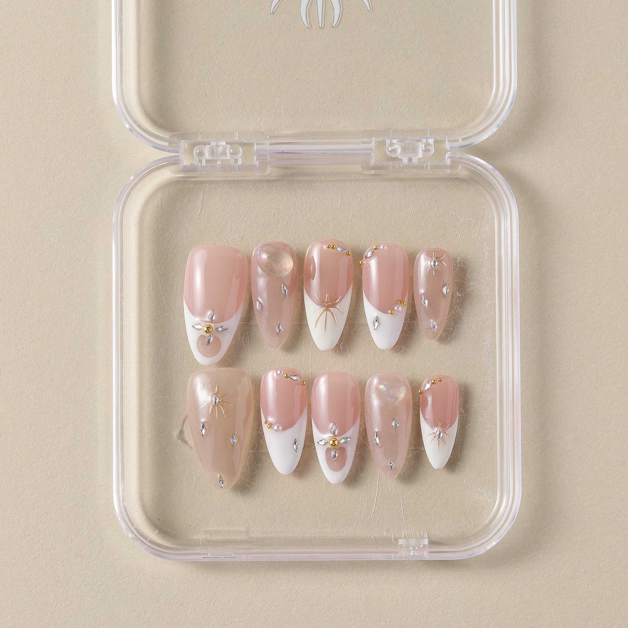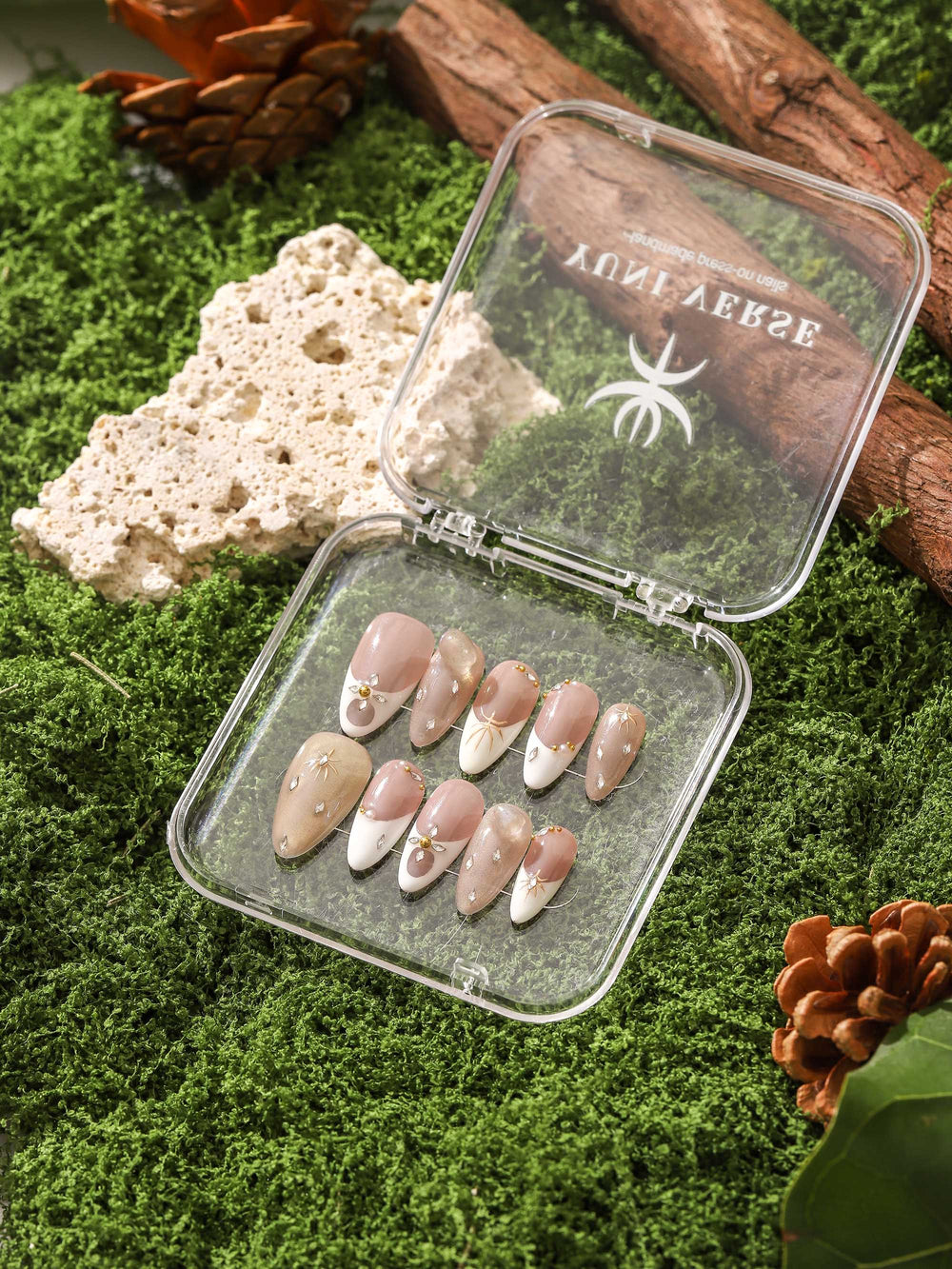 This wearable nail art seamlessly blends the Shamanic family’s two-century-old totem tradition with modern minimalist aesthetics. The golden hand-painted totem is derived from our family’s sacred symbols, blended with cinnabar powder, representing the connection between Yin and Yang and the union of heaven and earth—an important medium for channeling natural energy.